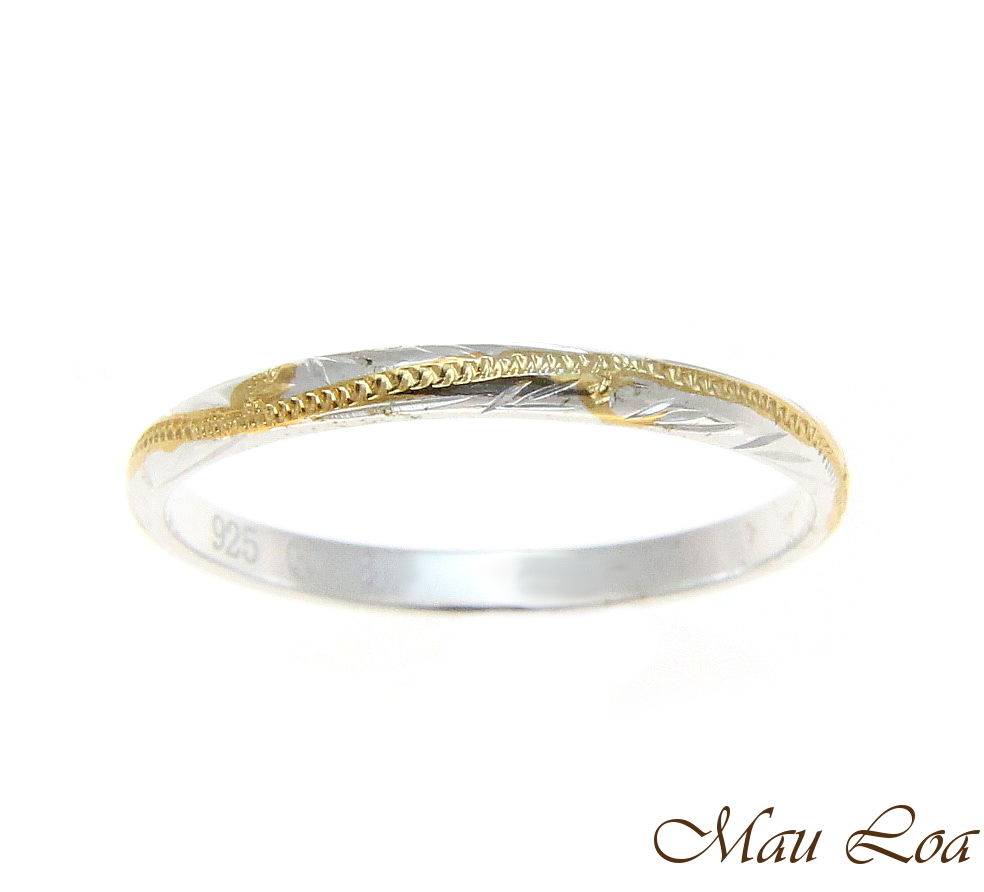925 Silver 2 Tone Yellow Gold 2mm Hawaiian Scroll Hand Engraved Ring Band #1-9